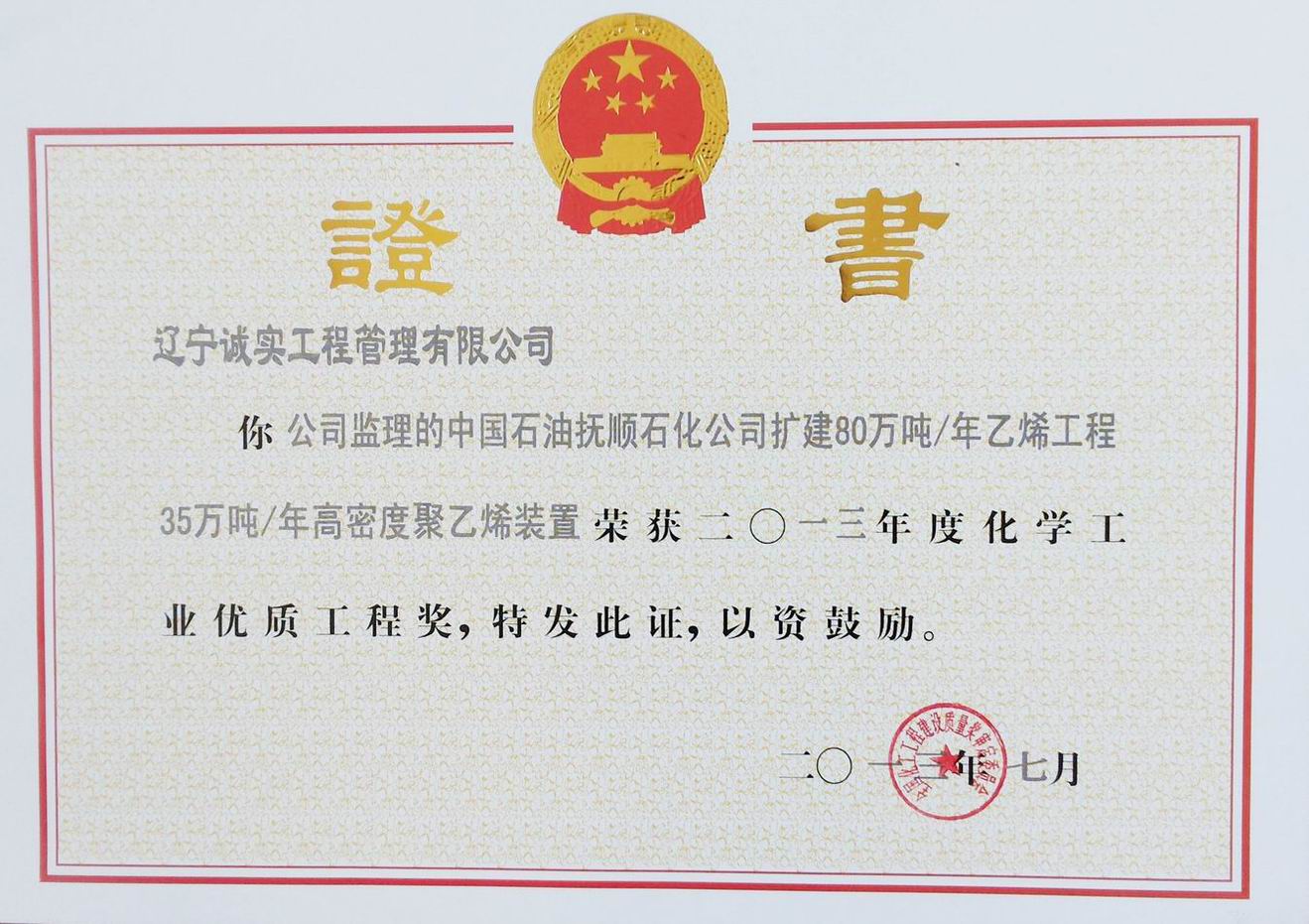 2013年化學工業(yè)優(yōu)質工程獎(撫順石...